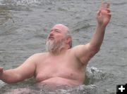 Members of the Libby, Montana Polar Bear Club took their annual New Year's dip in Libby Creek Sunday, attracting about 75 spectators and about two dozen people willing to take the plunge. The water temperature registered 36 degrees, with the air temperature about the same...much warmer than two weeks ago, when ice had to be broken off the creek in order to swim. This swim was the 10th of this season, with dips occurring every Sunday at 2:00 p.m. from the end of October through the first Sunday in April. Polar Bear Rick, president of the club, is celebrating his 29th year as a Polar Bear.