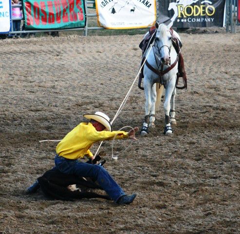 | LibbyMt.com > News > July 2015 > Kootenai River Rodeo > Workin' the calf |