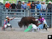 The eleventh annual Incredi-Bull bull riding event was held Saturday evening, June 10, at J. Neils Park with 31 riders competing. Libby's Jason Colclough and Trego's Gerald Eash were the local competitors participating in the event for the Libby crowd. The ride is sanctioned by Elite Professional Bullriders, Inc.