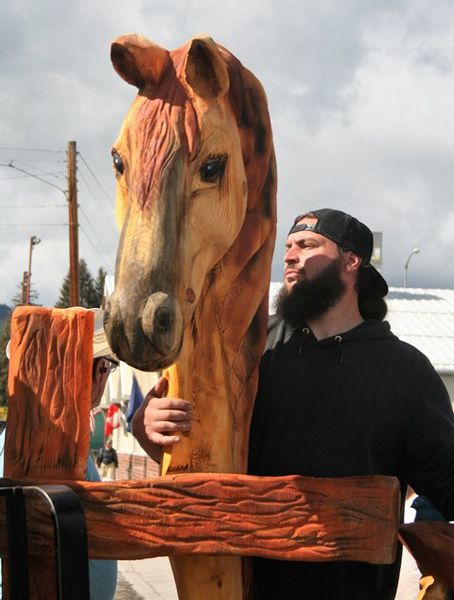 | LibbyMt.com > News > September 2018 > Chainsaw Carving Championship - Sunday > Bringing in the horse |
