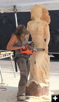 Libby's Chainsaw Carving Championship On Mineral Avenue. Pictured at right is the exhibition piece by Dennis Beach on Friday, September 9. Judging occurs on Sunday, September 11.