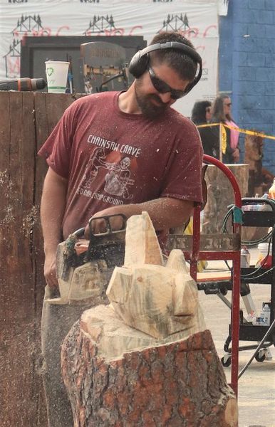 LibbyMt.com > News > September 2022 > Chainsaw Carving Championship > Joe Dussia quick carve