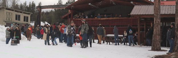 | LibbyMt.com > News > February 2023 > Yaak River Tavern & Mercantile Outhouse Races > The crowd |