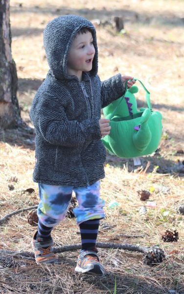 | LibbyMt.com > News > March 2024 > Easter Egg Hunt > A happy guy with his dino bucket |