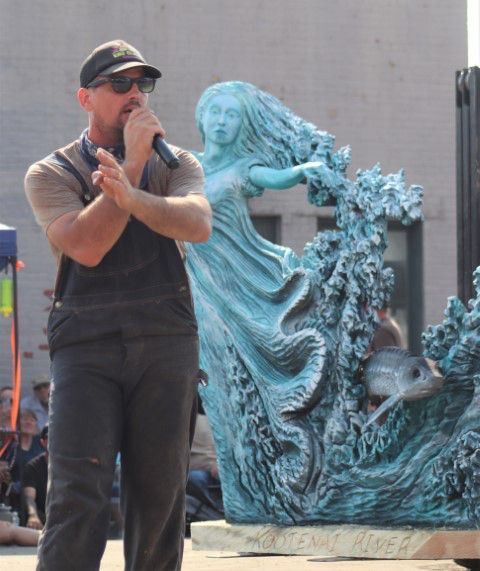 | LibbyMt.com > News > September 2024 > Chainsaw Carving Championship > Steven fetches $6500 for the Kootenai River carving |