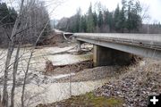 More rain Monday and Tuesday still had area streams running high and muddy, although below flood stage experienced on Thursday, December 11. This is the Farm to Market bridge over Libby Creek on Tuesday, December 16.